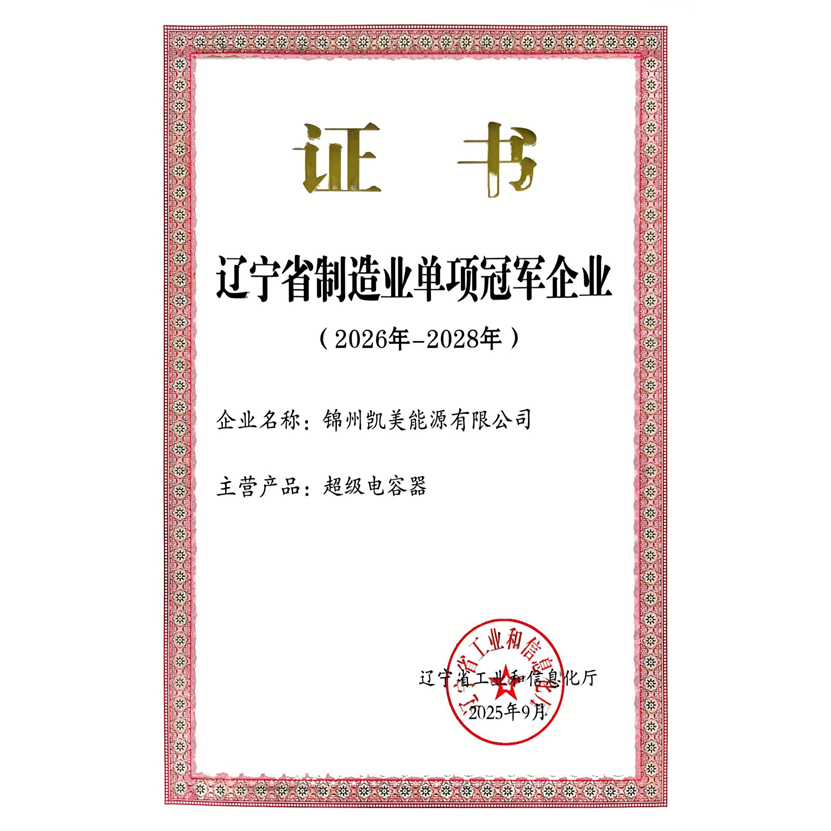 錦州凱美能源有限公司再次榮獲"遼寧省制造業(yè)單項冠軍企業(yè)"稱號,實現(xiàn)連續(xù)獲評。這是公司在超級電容器領(lǐng)域深耕近20年、繼國家級專精特新"小巨人"等榮譽后,獲得的又一省級權(quán)威認可,充分彰顯了公司在細分市場的領(lǐng)先地位和核心競爭力。